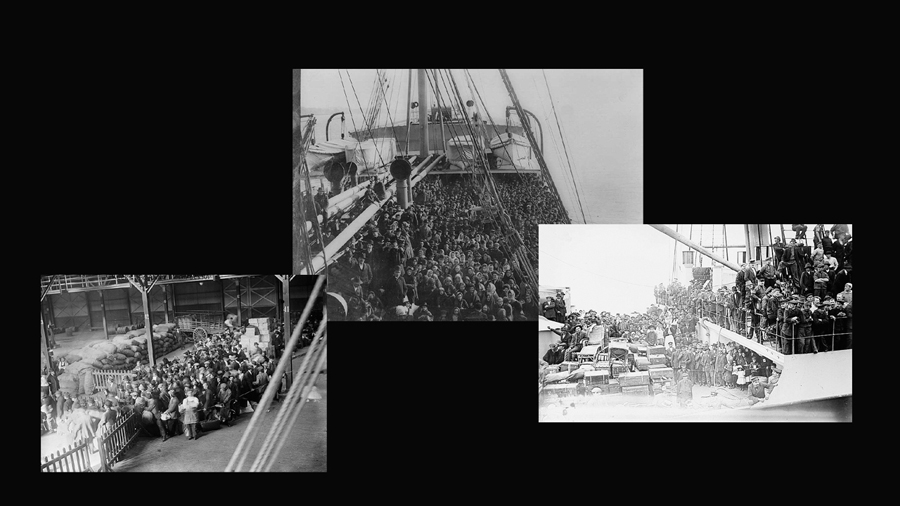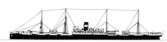 Built by Palmers Shipbuilding & Iron Company, Newcastle, England, 1902. 9,291 gross tons; 470 (bp) feet long; 56 feet wide. Steam triple expansion engines, twin screw. Service speed 14 knots. 2,290 passengers (40 first class, 50 second class, 2,200 third class).One funnel, four masts.